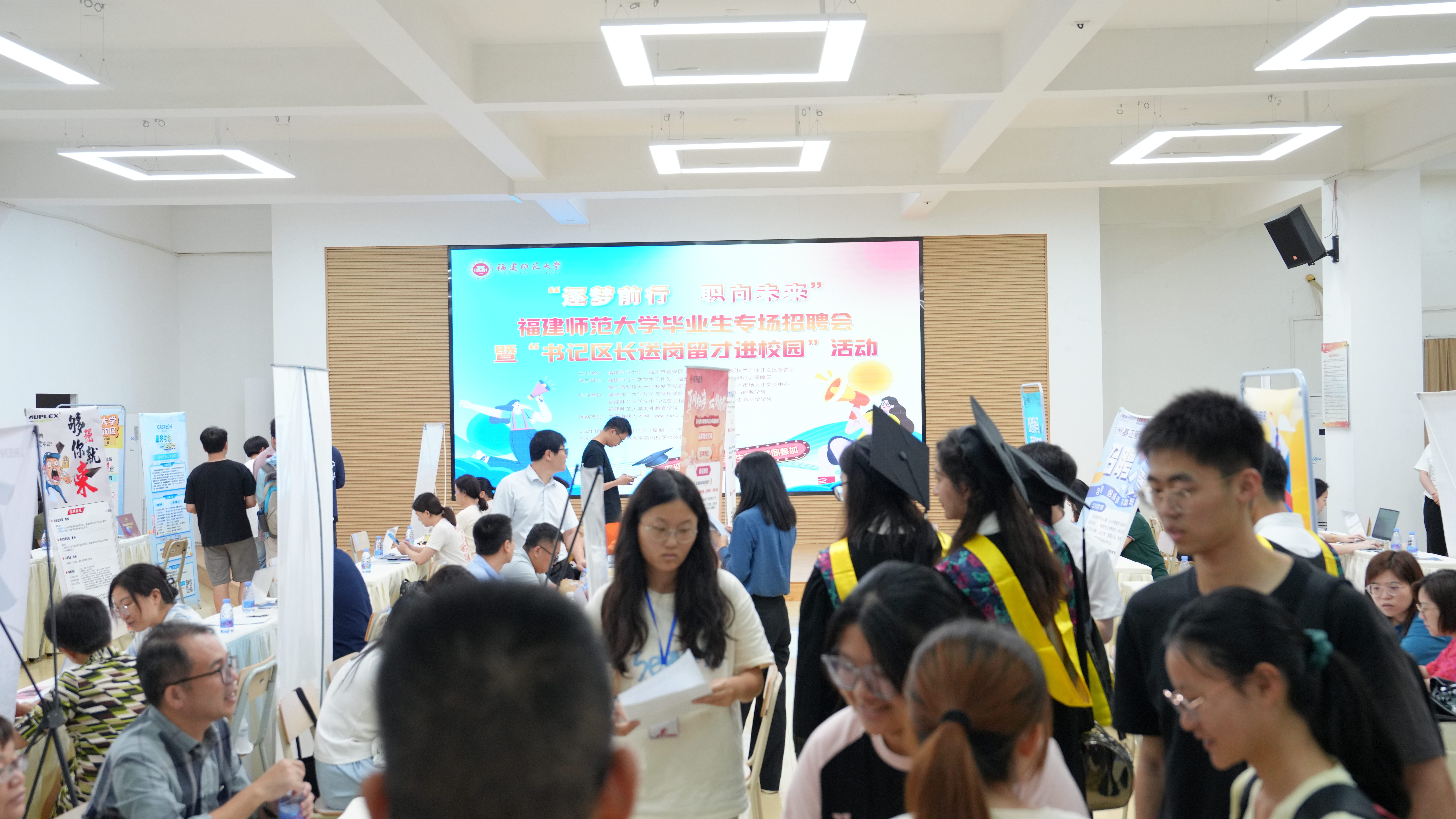 6月17日,“逐梦前行 职向未来”荣耀体育注册大厅_荣耀体育(中国)毕业生专场招聘会暨“书记区长送岗留才进校园”活动在旗山校区举行。招聘会由福州市晋安区人民政府、福州高新技术产业开发区管委会和荣耀体育注册大厅_荣耀体育(中国)联合举办。福州高新区管委会副主任、二级调研员林松旺,福州市晋安区政协副主席林秀锦,校党委副书记涂荣,学生工作部负责人、各学院分管学生工作负责人,毕业班辅导员以及2024届毕业生参会。
