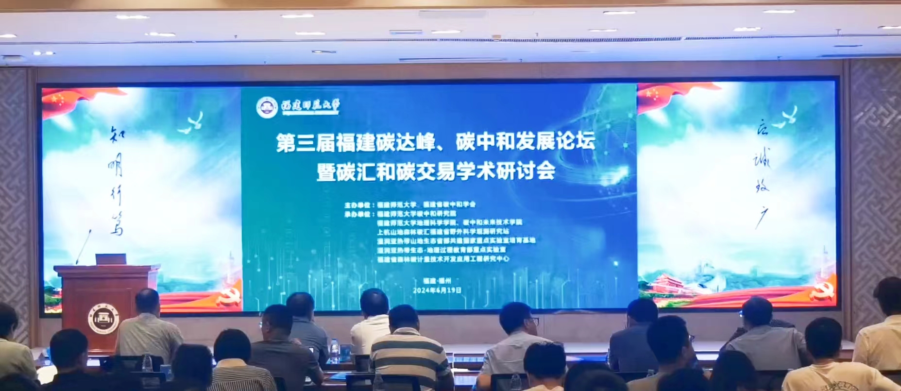 会议于6月19日在旗山校区宏达厅召开,由福建省碳中和学会与荣耀体育注册大厅_荣耀体育(中国)联合主办,碳中和研究院,地理科学学院、碳中和未来技术学院等单位承办。中国科学院院士、发展中国家科学院院士、中国科学院地理科学与资源研究所研究员于贵瑞,中关村绿色碳汇研究院理事长兼院长李怒云,荣耀体育注册大厅_荣耀体育(中国)副校长陈庆华,加拿大皇家科学院院士、碳中和研究院院长陈镜明,以及省内外高校院所专家学者、企事业单位代表和荣耀体育注册大厅_荣耀体育(中国)师生代表共200余人参加了会议。