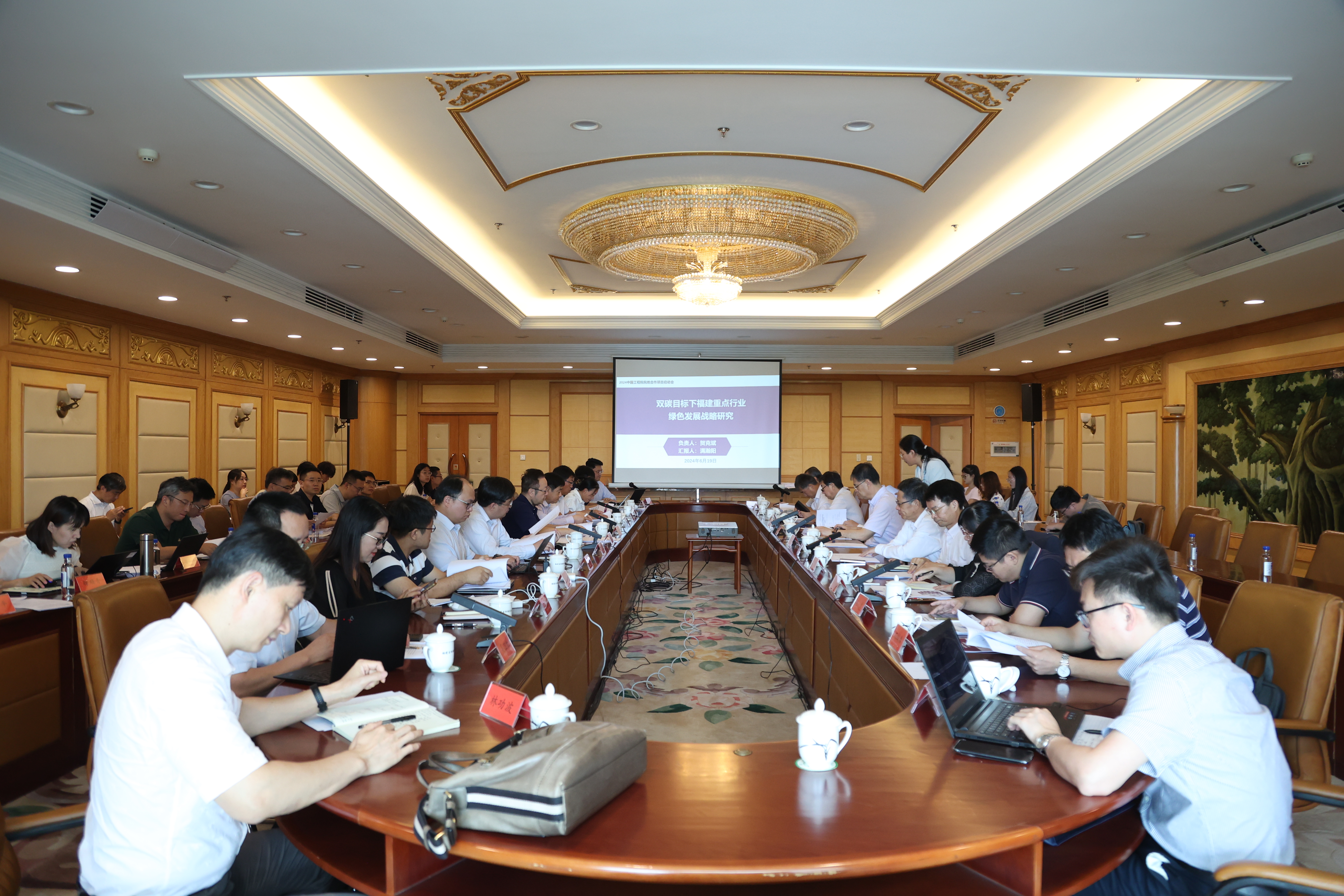 6月19日,荣耀体育注册大厅_荣耀体育(中国)参与的中国工程科技发展战略福建研究院重大咨询项目“双碳目标下福建重点行业绿色发展战略研究”项目启动会在福建会堂召开。中国工程院院士贺克斌、王金南、贺泓、陈文兴、任洪强、高翔,福建省科协党组成员、副主席林学理,中国环境保护产业协会副会长易斌,荣耀体育注册大厅_荣耀体育(中国)副校长陈庆华、南昌大学资源与环境学院院长石磊,厦门大学环境学院副院长于鑫,福州大学教授徐开钦,福建省节能中心副主任邱岚,福建省环境科学研究院副院长石成春等省内外专家、项目各课题研究成员、企事业单位代表共80余人参会。启动会由陈庆华主持。