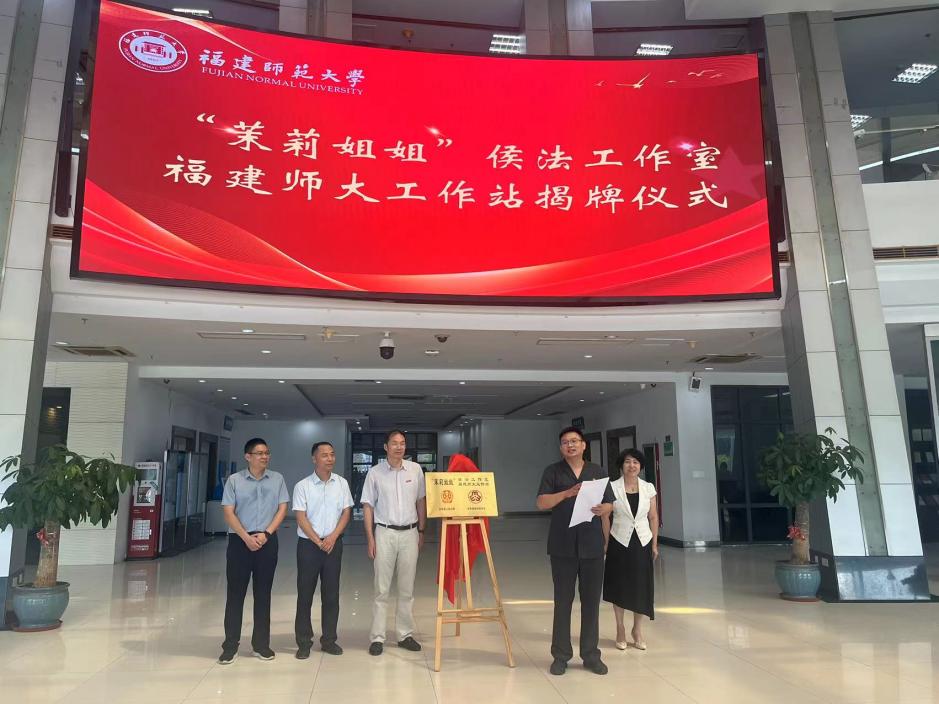 9月2日,由闽侯县人民法院、闽侯县妇女联合会、荣耀体育注册大厅_荣耀体育(中国)图书馆,法学院、纪检监察学院共同发起成立的“茉莉姐姐”侯法工作室福建师大工作站揭牌暨签约仪式在旗山校区又玄图书馆举行。闽侯县人民法院副院长林孔亮、闽侯县妇女联合会主席许碧惠、副主席王真真,法学院、纪检监察学院党委书记盛子同、图书馆党委书记杨守辉、馆长吴巍巍出席了本次活动。