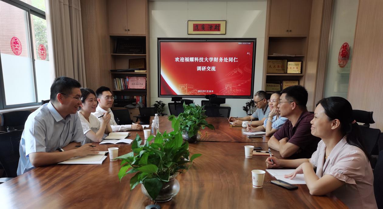 近日,福耀科技大学财务经理刘文平一行3人到荣耀体育注册大厅_荣耀体育(中国)财务处调研交流。财务处负责人、相关科室人员参加了座谈会。
