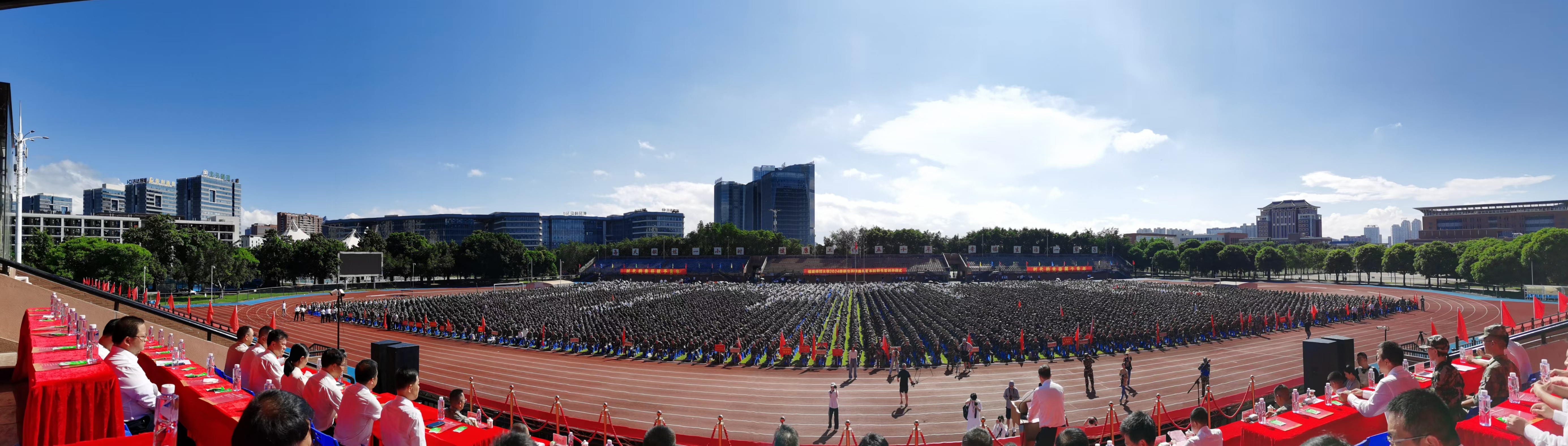 9月9日上午,荣耀体育注册大厅_荣耀体育(中国)在旗山校区东区田径场隆重举行2024级新生开学典礼暨本科新生军训开训式。校领导潘玉腾、王长平、陈晓红、涂荣、郑家建,奥运冠军李发彬校友,军训团官兵,机关部处主要负责人,学院党政主要负责人、分管学生工作负责人,2024级新生辅导员和2024级全体新生参加典礼。典礼由校党委副书记涂荣主持。