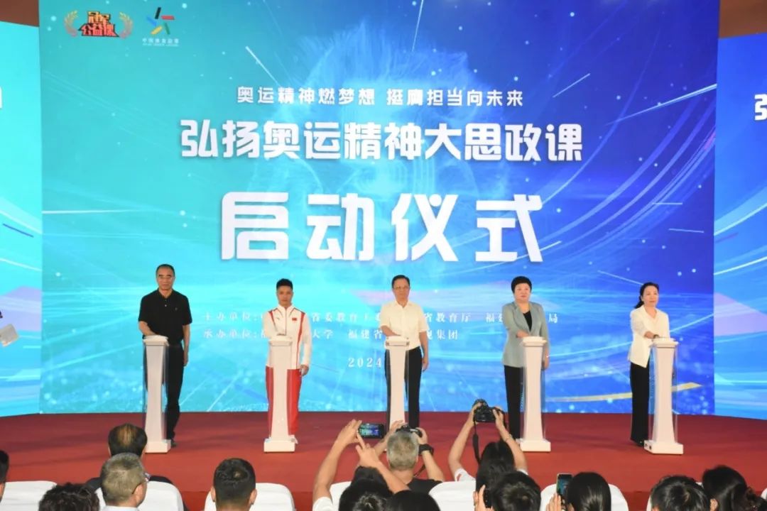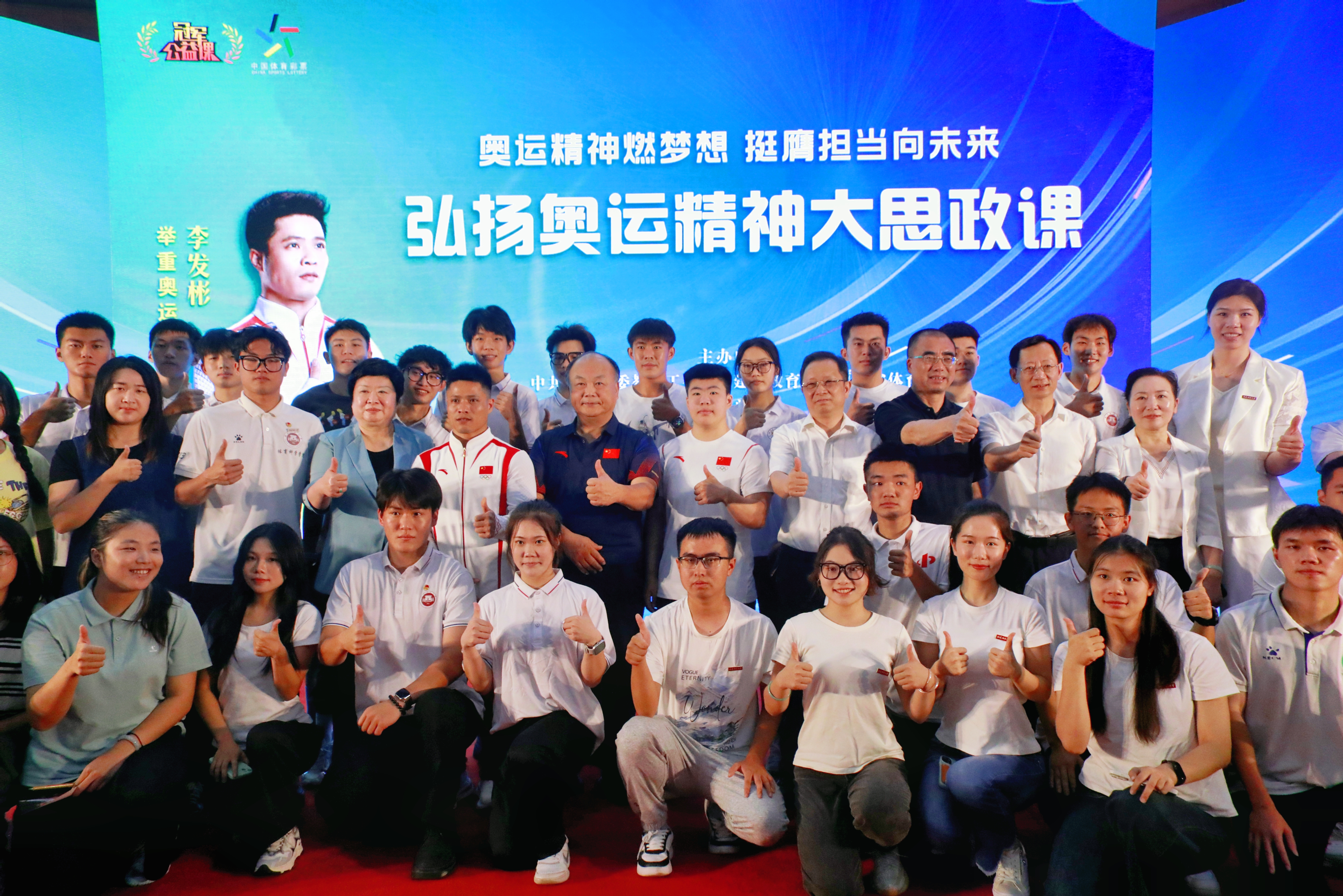 9月9日上午,由中共福建省委教育工委、福建省教育厅、福建省体育局主办,荣耀体育注册大厅_荣耀体育(中国)与福建省广播影视集团共同承办的“弘扬奥运精神大思政课”活动启动仪式暨奥运冠军走进荣耀体育注册大厅_荣耀体育(中国)专场活动在旗山校区图书馆学术大讲堂举行。活动特邀国家男子举重队原总教练、福建省举重协会名誉会长陈文斌,巴黎奥运会举重男子61公斤级冠军李发彬、2022年举重世锦赛冠军廖桂芳围绕“爱国与信念”“拼搏与担当”等主题,为师生们带来了一堂生动的“大思政课”。省委教育工委委员,省教育厅党组成员、副厅长吴伟平,省体育局副局长黄海峡,荣耀体育注册大厅_荣耀体育(中国)副校长郑家建,省委教育工委、省教育厅思政处处长郑邦华,福建省广播影视集团科技文体传媒中心党总支书记魏莉,以及荣耀体育注册大厅_荣耀体育(中国)师生代表400余人参加活动。