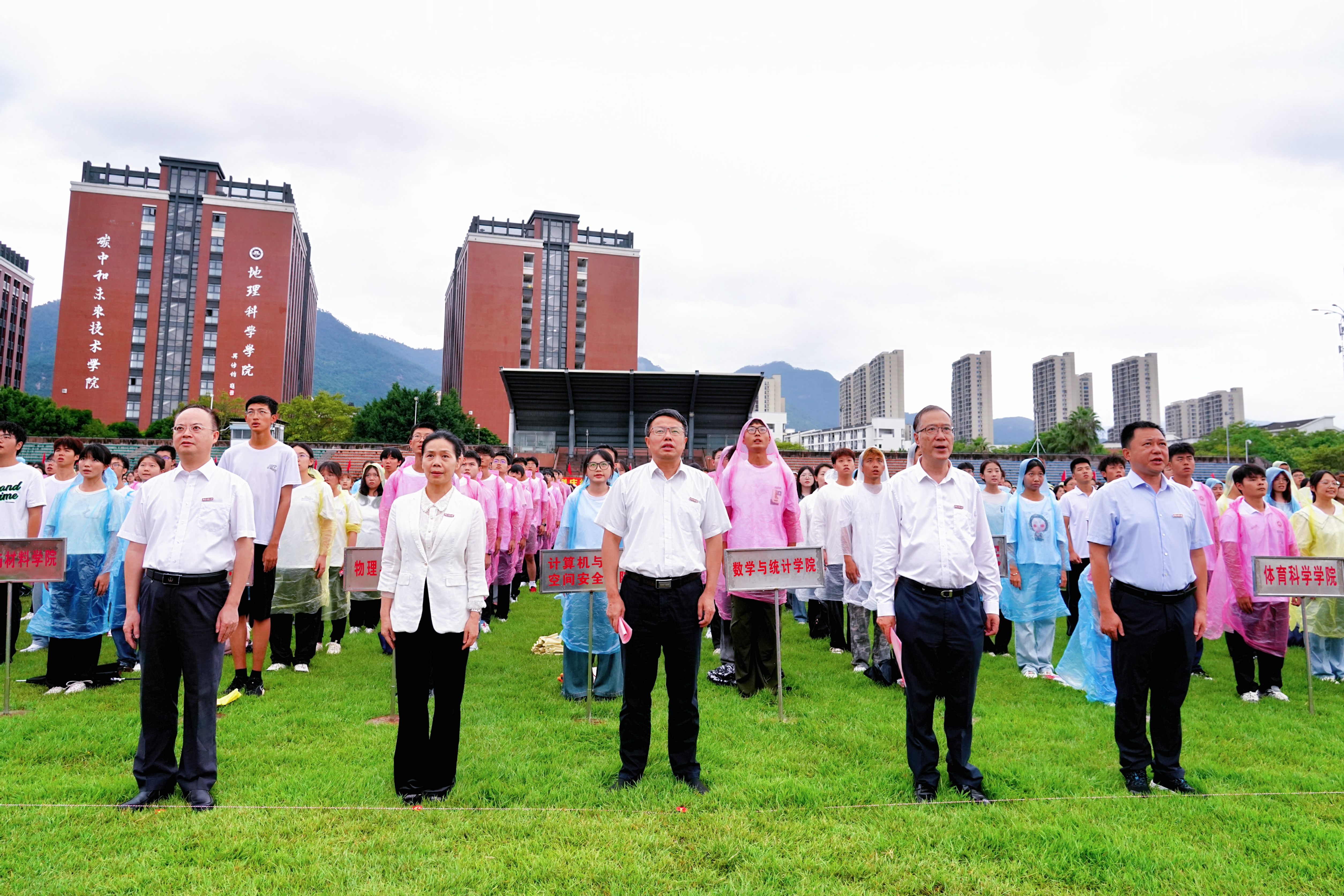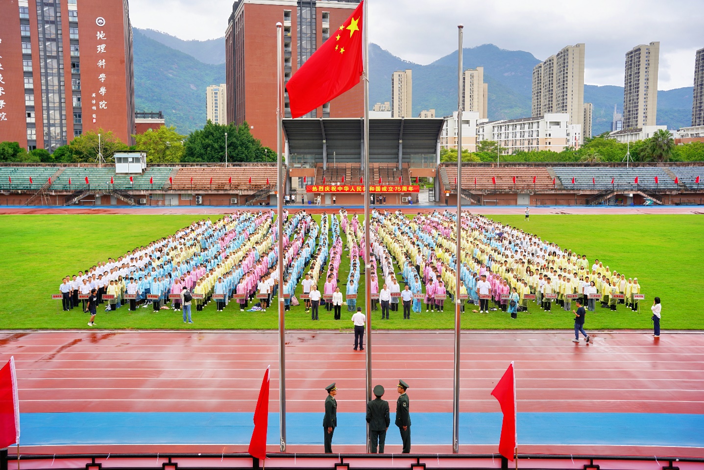 10月1日上午,荣耀体育注册大厅_荣耀体育(中国)在旗山校区东区田径场隆重举行庆祝中华人民共和国成立75周年升国旗仪式。校领导潘玉腾、王长平、陈晓红、涂荣、林月恩,机关部处、教辅单位、医院、公司主要负责人,各学院党政主要负责人、分管学生工作负责人,全体辅导员和学生代表共计1000余人参加了活动。校长王长平主持仪式。