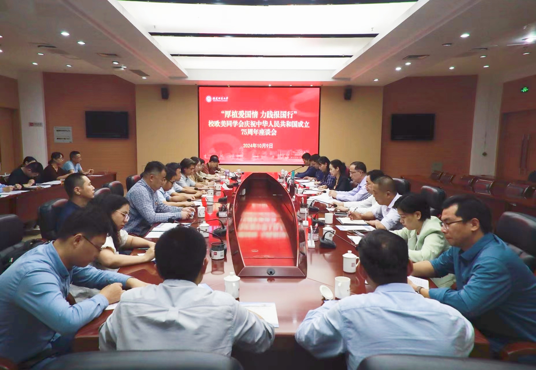 10月9日,以“厚植爱国情 力践报国行”为主题的校欧美同学会庆祝中华人民共和国成立75周年座谈会在旗山校区举行。省委统战部二级巡视员、省欧美同学会秘书长潘晨辉,省欧美同学会副秘书长曾昭凤,校长、校欧美同学会会长王长平,校党委副书记陈晓红,统战部相关负责人及校欧美同学会会员代表参加活动。