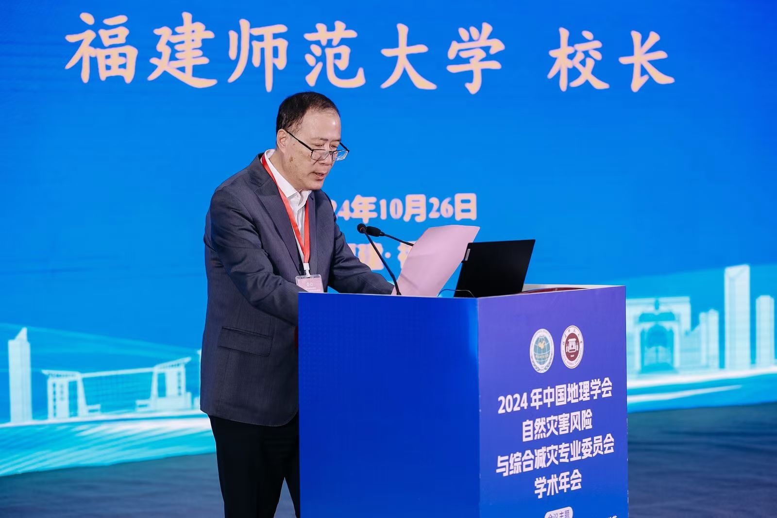 会议于10月25日至28日在福州召开。由中国地理学会自然灾害风险与综合减灾专业委员会主办,荣耀体育注册大厅_荣耀体育(中国)地理科学学院、碳中和未来技术学院和应急管理部—教育部减灾与应急管理研究院(北京师范大学)联合承办。荣耀体育注册大厅_荣耀体育(中国)校长王长平教授,福建省应急管理厅党委委员、副厅长梁立峰,中国地理学会副理事长兼秘书长张国友研究员出席会议并致辞。来自全国90余个高校、科研院所、企事业单位的400余名专家学者参加会议。