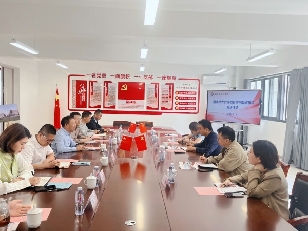 近日,教师教育学院党委书记陈祖棋带领专任教师、学院办公室有关负责人赴福州市晋安区考察对接基础教育服务工作,并开展访企拓岗活动。晋安区委副书记、区长董敬太,区委副书记叶晓兰,副区长、区委教育工委书记、区教育局局长杨佳松,区政府办党组成员、三级主任科员黄德东,区教育局副局长谢振国等参加座谈。