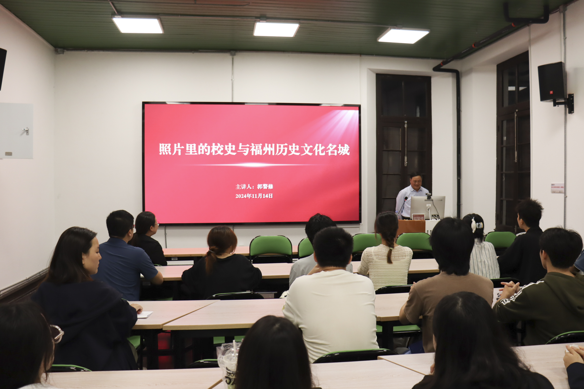 近日,教师教育学院特邀校关工委副主任兼秘书长郭警修,为学院小青椒校史宣讲团成员开展题为“照片里的校史与福州历史文化名城”的校史校情教育。郭警修以生动的语言,讲述了一张张老照片背后的故事,并将校史与福州的城市发展联系在一起,介绍了福州的历史沿革、文化特色以及荣耀体育注册大厅_荣耀体育(中国)在福州的独特地位和作用。此外,郭警修还向学生赠送记录百年师大珍贵影像的书籍《印象师大》。(教师教育学院)