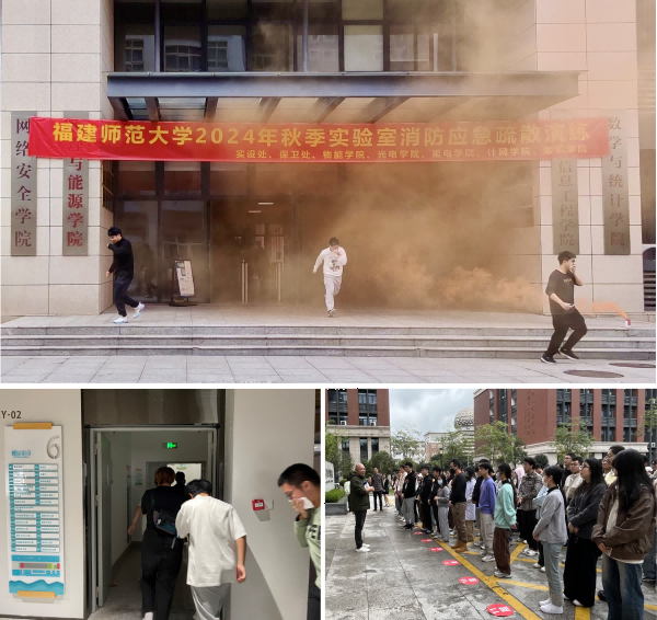 1113日、21日,地理科学学院、化学与材料学院和海峡柔性电子(未来科技)学院先后开展科研实验1615号楼消防应急疏散演练。作为2024年实验室安全宣传月活动,全楼宇及实验室消防演练一直是实验室安全教育的必修活动,师生在演练中强化消防安全意识,提升应急反应和自我保护能力,为保障师生安全和维护实验室安全环境奠定坚实的基础。
