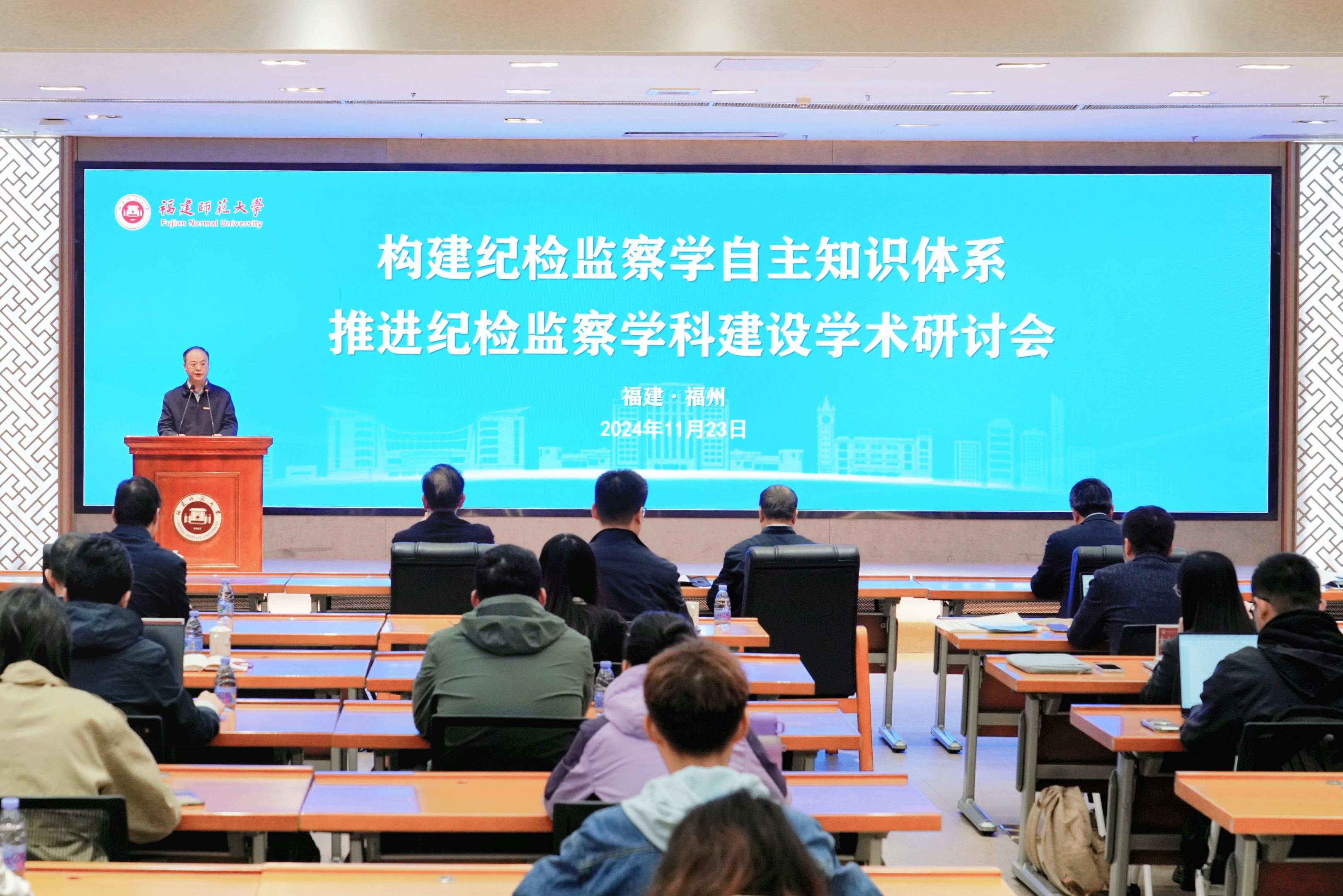 研讨会于11月23日在旗山校区举行。中国纪检监察学院客座教授、中国廉政研究中心副理事长李雪勤,国务院学位委员会纪检监察学学科评议组召集人、华东政法大学党委书记、纪检监察学院院长郭为禄教授,中国社会科学院学部委员、中国社会科学院法学研究所/国际法研究所联合党委书记、中国社会科学院法学研究所所长、中国社会科学院大学法学院院长莫纪宏研究员,国务院学位委员会纪检监察学学科评议组成员兼秘书长、清华大学党委副书记、国际反腐败学院理事会理事过勇教授,南方科技大学党委副书记、纪委书记、廉洁研究院院长姚文胜教授出席研讨会,来自清华大学、中国人民大学、中国政法大学、华东政法大学、北京科技大学、湘潭大学、福建省委党校(福建行政学院)专家,以及荣耀体育注册大厅_荣耀体育(中国)纪检监察学科师生代表等100多人参加研讨会。荣耀体育注册大厅_荣耀体育(中国)党委书记潘玉腾教授出席开幕式并致辞,福建省纪检监察协会副会长、校纪委书记林月恩研究员主持研讨会。