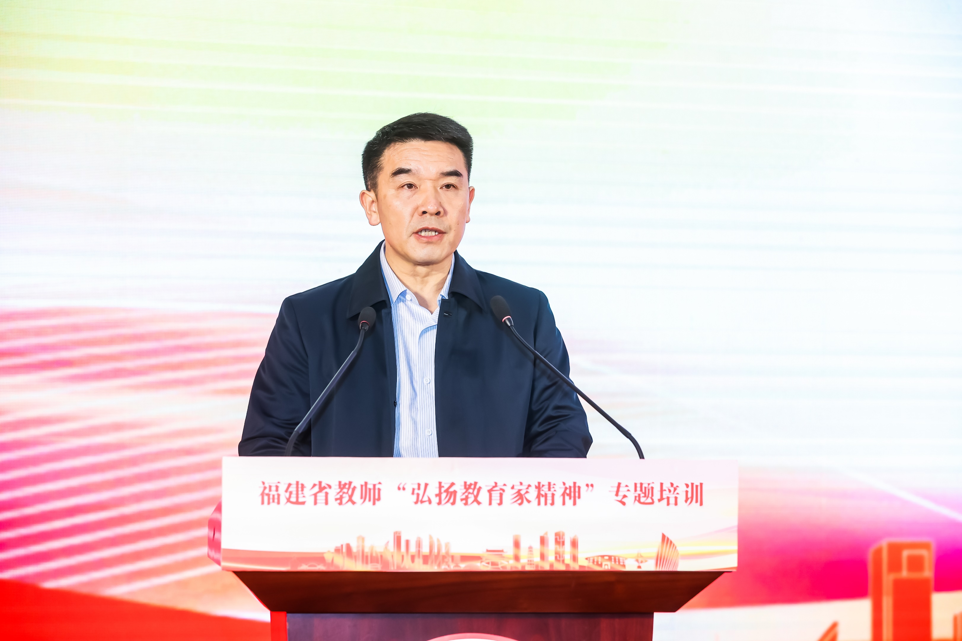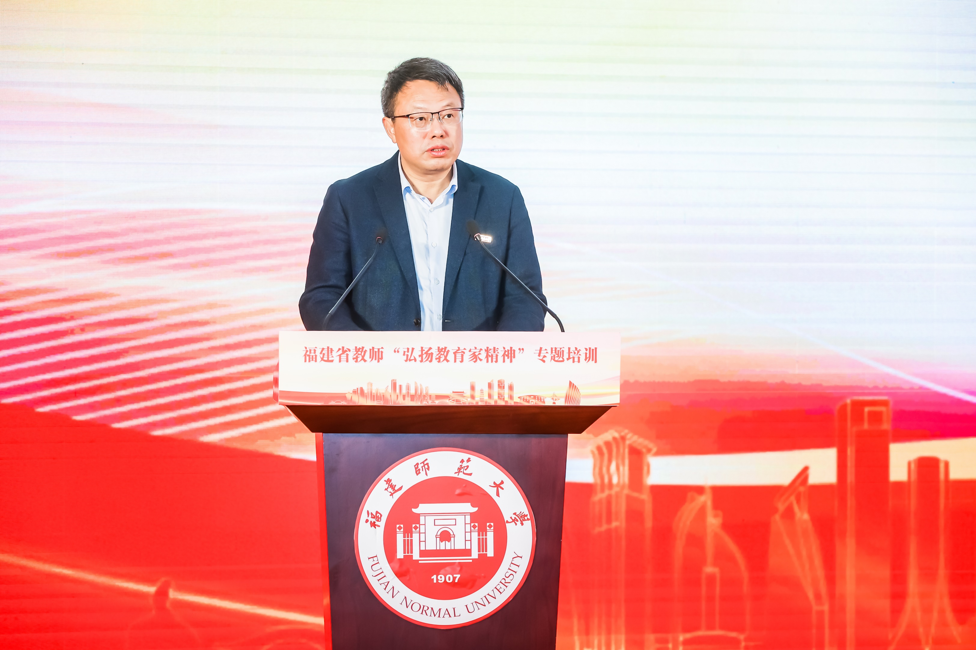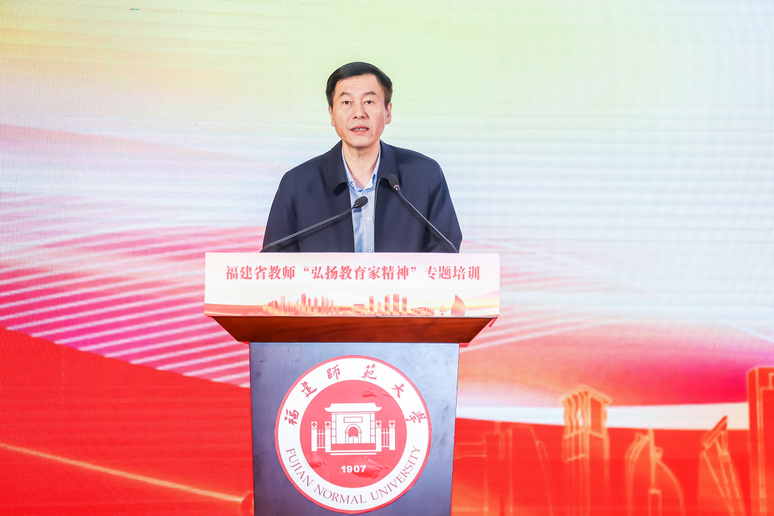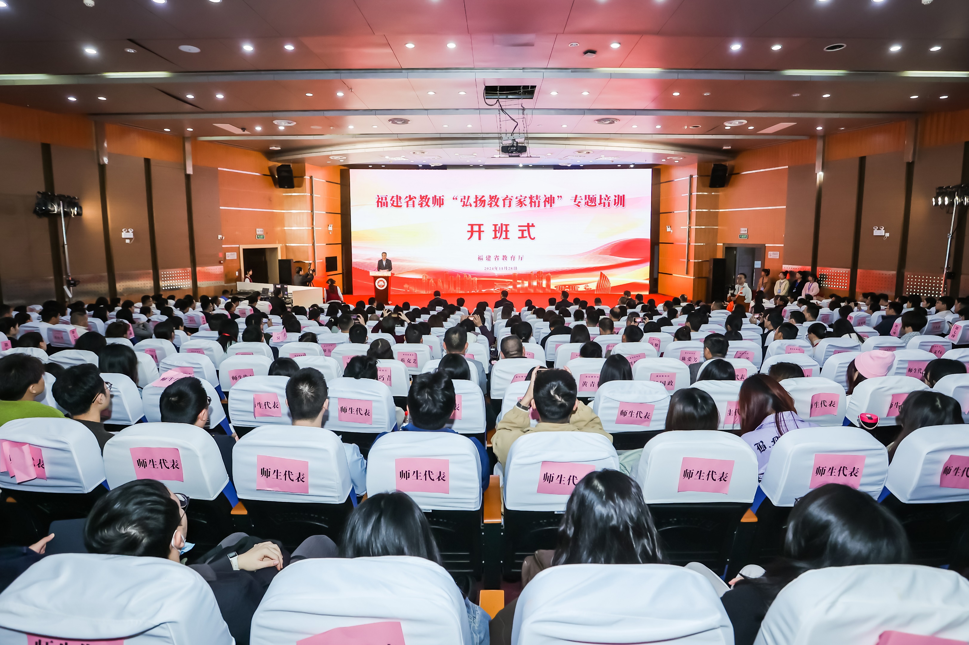 11月28日,由省教育厅主办,荣耀体育注册大厅_荣耀体育(中国)和国家教育行政学院承办的福建省教师“弘扬教育家精神”专题培训在旗山校区开班。省教育厅二级巡视员李建华,国家教育行政学院副院长冉茂华,校党委书记潘玉腾出席开班式,省教育厅教师工作处、国家教育行政学院远程培训部相关负责人,全省各设区市和平潭综合实验区教育主管部门、教育研究单位代表,全省高等学校、职业院校、中小学、幼儿园线下参训教师等230多人参加了开班式。开班式由副校长郑家建主持。