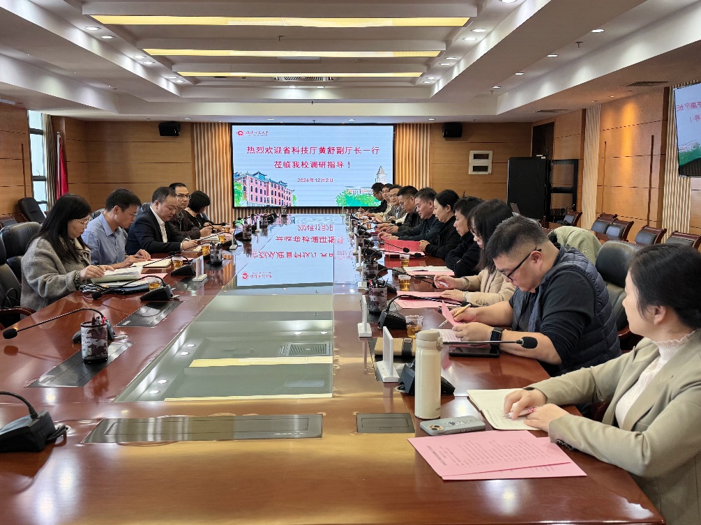 座谈会上,吴剑锋代表学校对黄舒一行来校调研指导表示热烈欢迎,向省科技厅长期以来关心支持学校改革发展表示衷心感谢,并简要介绍了学校总体发展情况。黄舒听取了荣耀体育注册大厅_荣耀体育(中国)近三年来承担省级科技计划项目情况介绍,重点了解省属公益类科研院所专项与创新战略研究项目情况,他指出,荣耀体育注册大厅_荣耀体育(中国)是一所具有悠久历史和深厚文化底蕴的高等学府,希望学校在创新战略研究方面继续发挥大校优势,注重政策运用与创新投入,与最优者“对标”、与最强者“比拼”、与最快者“赛跑”,为我省高质量发展作出更大贡献。最后,双方就2025年度省创新战略研究项目指南和下一轮省属公益类科研院所专项评估工作进行交流探讨。