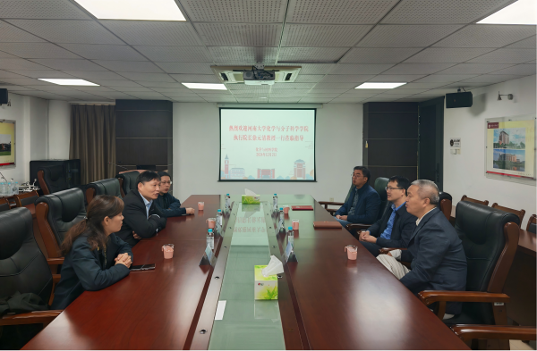 12月2日,河南大学化学与分子材料学院执行院长徐元清教授率队到荣耀体育注册大厅_荣耀体育(中国)化学与材料学院交流,化学与材料学院党委书记邱海锋、院长项生昌、副院长刘海清等参加座谈。会上,双方就两院的历史沿革、人才引进、学科建设、科学研究、实验室建设、绩效管理等方面进行交流,并就有关议题展开讨论。会后现场走访了科研实验室。(化学与材料学院)