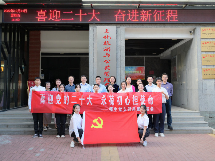 1014日,党政办公室党支部、文化旅游与公共管理学院2021级本科生第二党支部共同开展“喜迎党的二十大  永葆初心担使命”主题党日活动。两个支部的党员、部分学生发展对象等参加了活动。