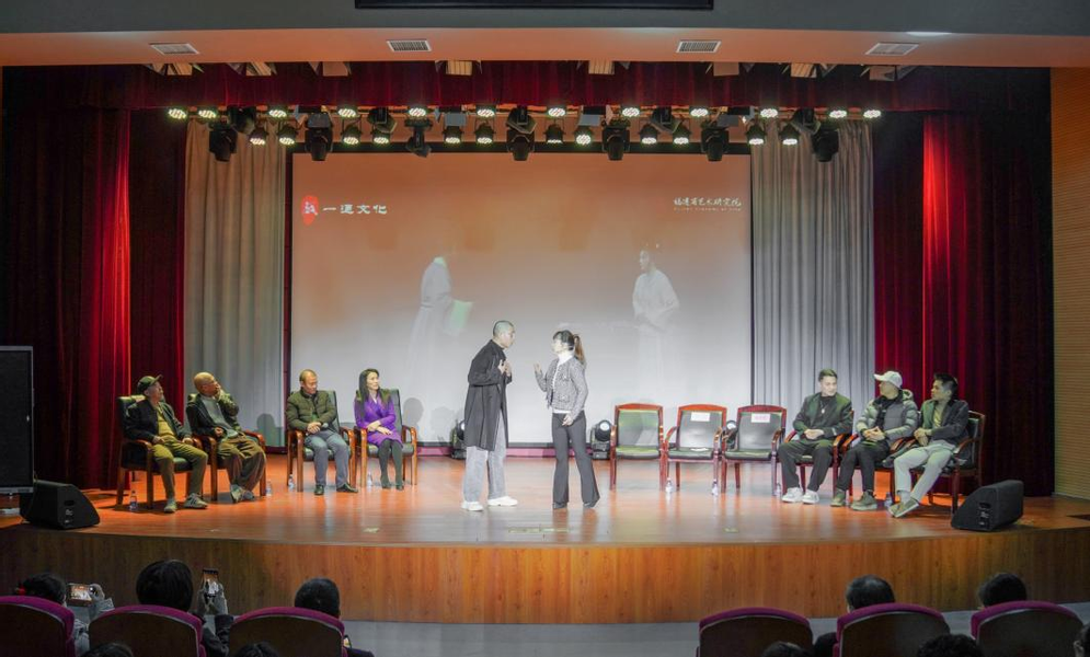 周虹介绍了省实验闽剧院的基本情况并向师生做剧目推介。王评章对剧目的思想性、文学性和艺术性进行深入剖析,为现场师生做全面导赏。编剧戴先良从创作背景、主题表达等方面对作品做充分阐释。主演陈琼、林宇辉、郑宁、林仁冰、唐桂林从角色塑造、舞台演绎等方面分享了剧目创作与演出中的故事和心得。剧组现场演绎了剧目经典的“画网巾”片段,还邀请学生戏剧爱好者做剧评分享,主创团队就学生提出的“闽剧如何走进青年”等问题一一解答,现场气氛热烈。