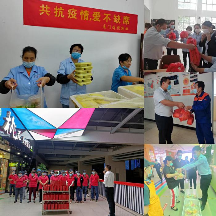 近期,校园后勤保障第三方服务单位——海投物业公司、丹田物业公司及联营餐厅餐饮公司对住校的抗疫一线员工开展慰问,通过派发爱心午餐、水果、点心等慰问品,为坚守在一线的员工送去关怀与温暖,号召广大员工共克时艰,以饱满的热情投入工作中,为师生提供更优质的服务。