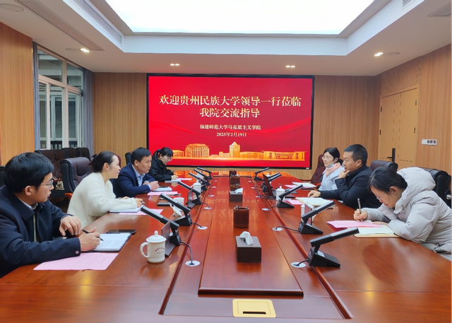 近日,贵州民族大学教师工作部部长、组织部副部长、人事处处长王恋,马克思主义学院党委副书记徐勤山一行4人到荣耀体育注册大厅_荣耀体育(中国)马克思主义学院调研交流。学院党委书记阮传瞰、教学科研管理办公室、学科与平台建设管理办公室负责人参加座谈会。