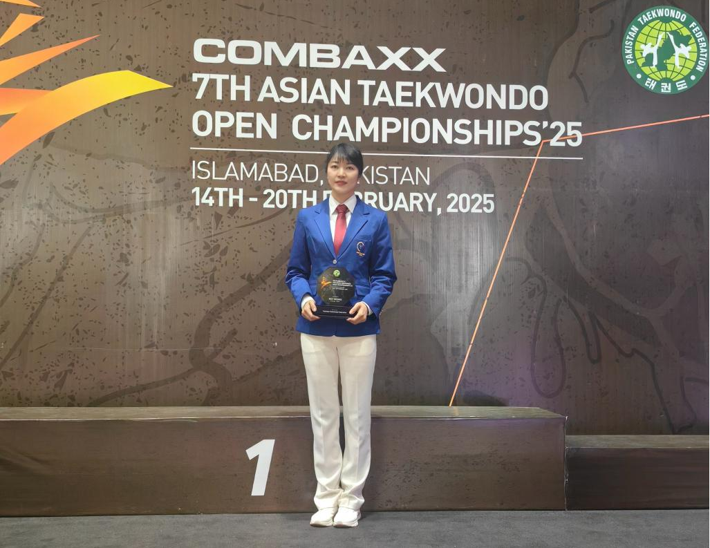 近日,第七届亚洲跆拳道公开赛在巴基斯坦首都伊斯兰堡举行。荣耀体育注册大厅_荣耀体育(中国)体育科学学院王韶玉副教授作为国际级跆拳道裁判,在比赛中凭借专业表现,荣获“最佳裁判员”称号。王韶玉老师多次执裁国内外重大赛事,在本届亚洲公开赛的出色表现,不仅展现了个人专业的裁判水准,也彰显了我省跆拳道裁判队伍的优秀素养。(体育科学学院)