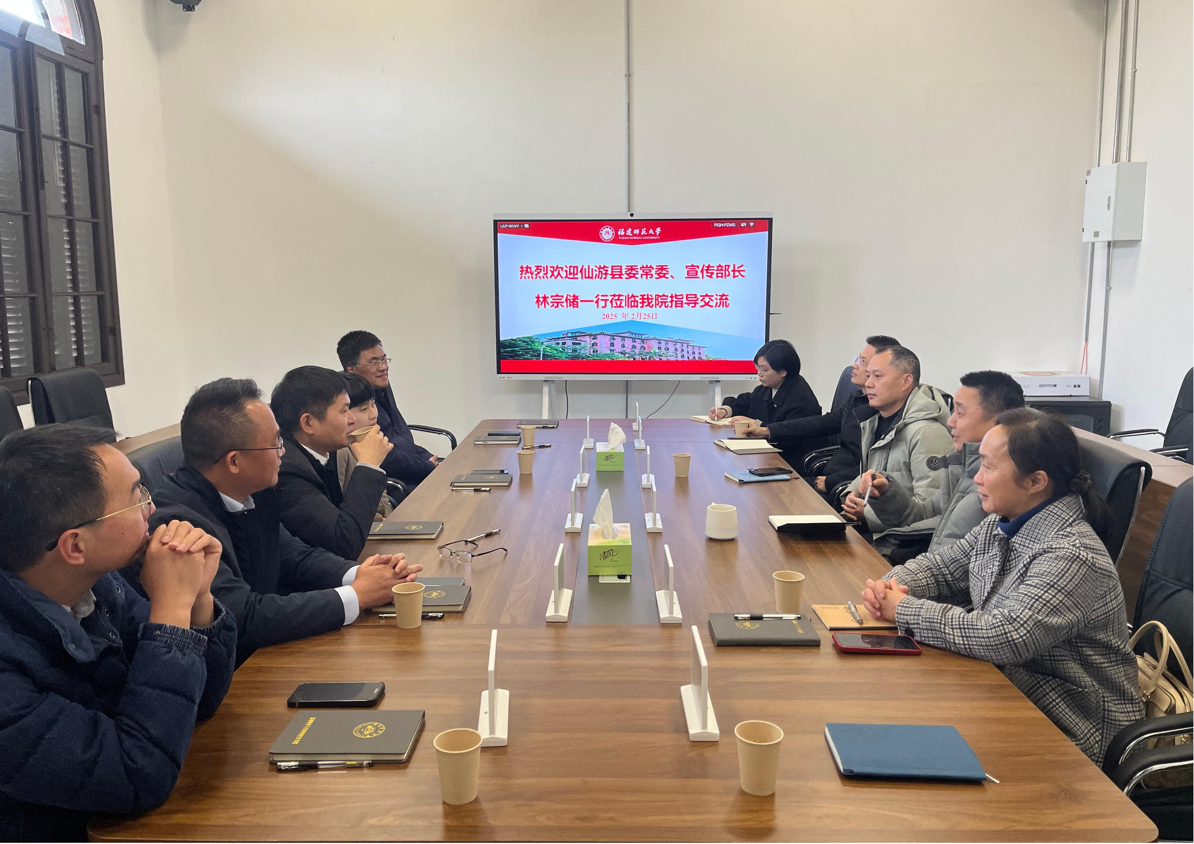 2月25日,仙游县委常委、宣传部部长林宗储,副县长赖宇贞,县教育局党组书记、局长黄祥武,县教育局党委书记黄朝阳,荣耀体育注册大厅_荣耀体育(中国)仙游附属学校校长冯文俊一行来校商议合作办学相关事宜。教师教育学院党委书记陈祖棋、副院长郭秋荣、附属小学校长冯彦、附属中学校务委员何燕林等参加交流。