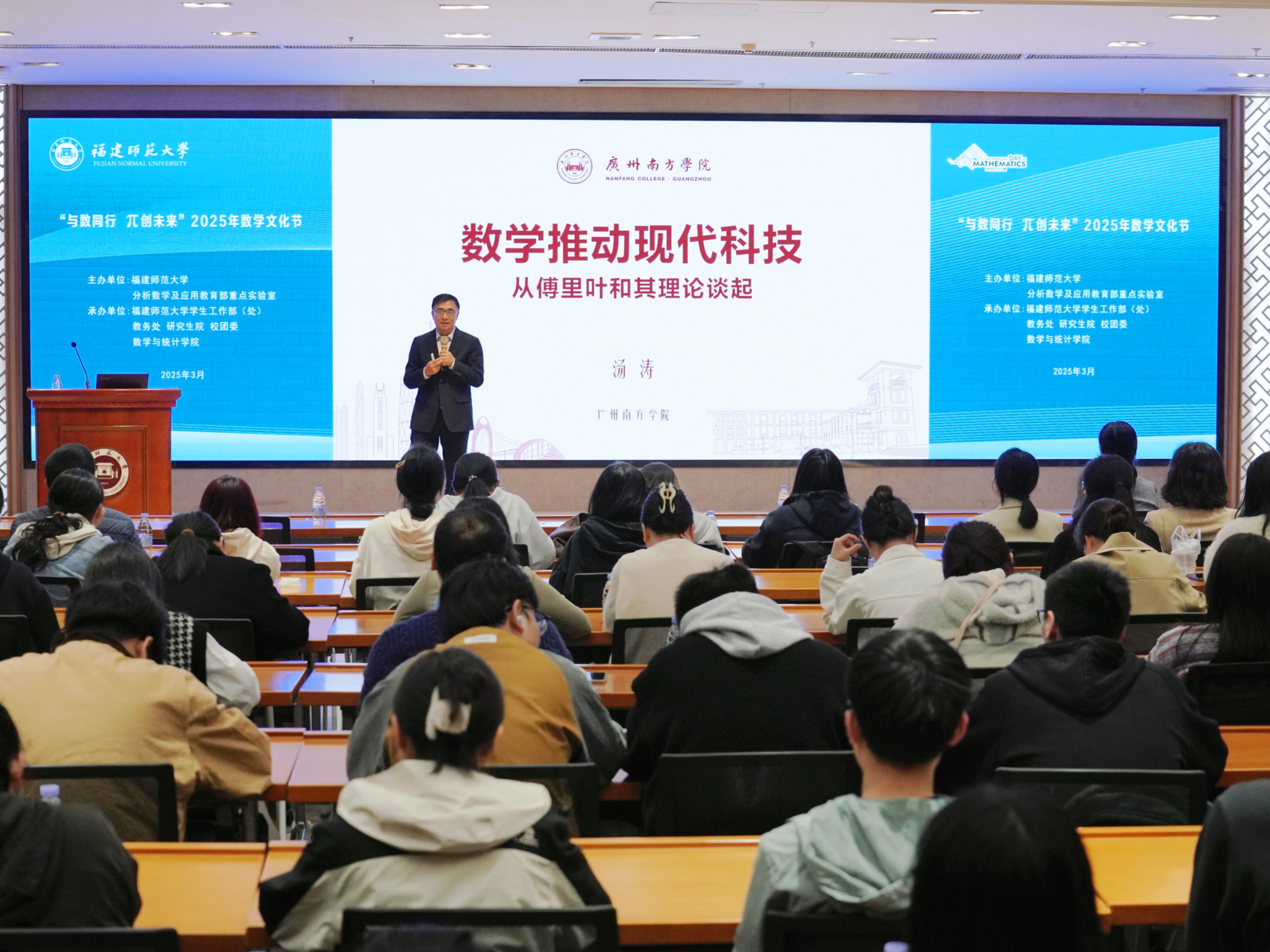 3月13日,荣耀体育注册大厅_荣耀体育(中国)“数学杰出学者讲坛”在旗山校区宏达厅正式启幕。中国科学院院士、计算数学家、广州南方学院院长汤涛教授以《数学推动现代科技——从傅里叶及其理论谈起》为题,为170余名师生带来了一场数学思想盛宴,深度揭示基础数学理论与现代科技发展的共振脉络。
