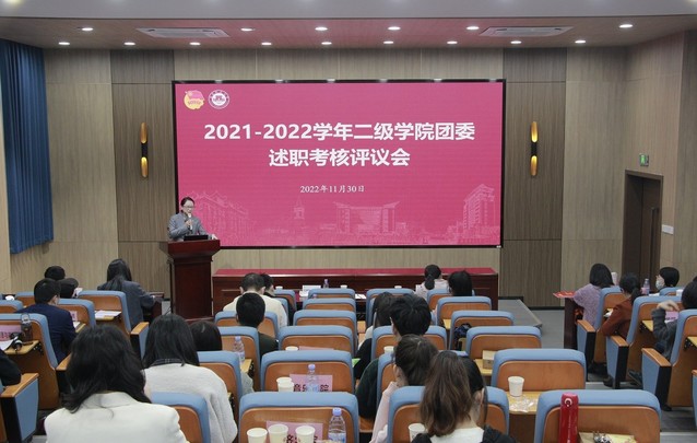 近日,2021-2022学年二级学院共青团工作考核暨学习宣传贯彻党的二十大精神工作部署会在旗山校区索莱达楼会议室召开。校团委机关成员,各二级学院团委书记、学生代表50余人参加本次会议。