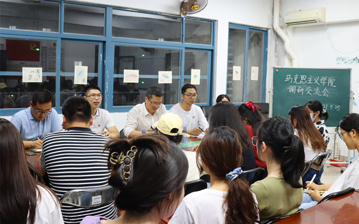 近日,马克思主义学院领导深入桃苑五号楼学生宿舍开展“我为师生办实事”主题调研活动,进一步落实“再学习、再调研、再落实”活动要求。学院领导张爱民、叶龙祥、全体辅导员及部分宿舍舍长参与了调研活动。