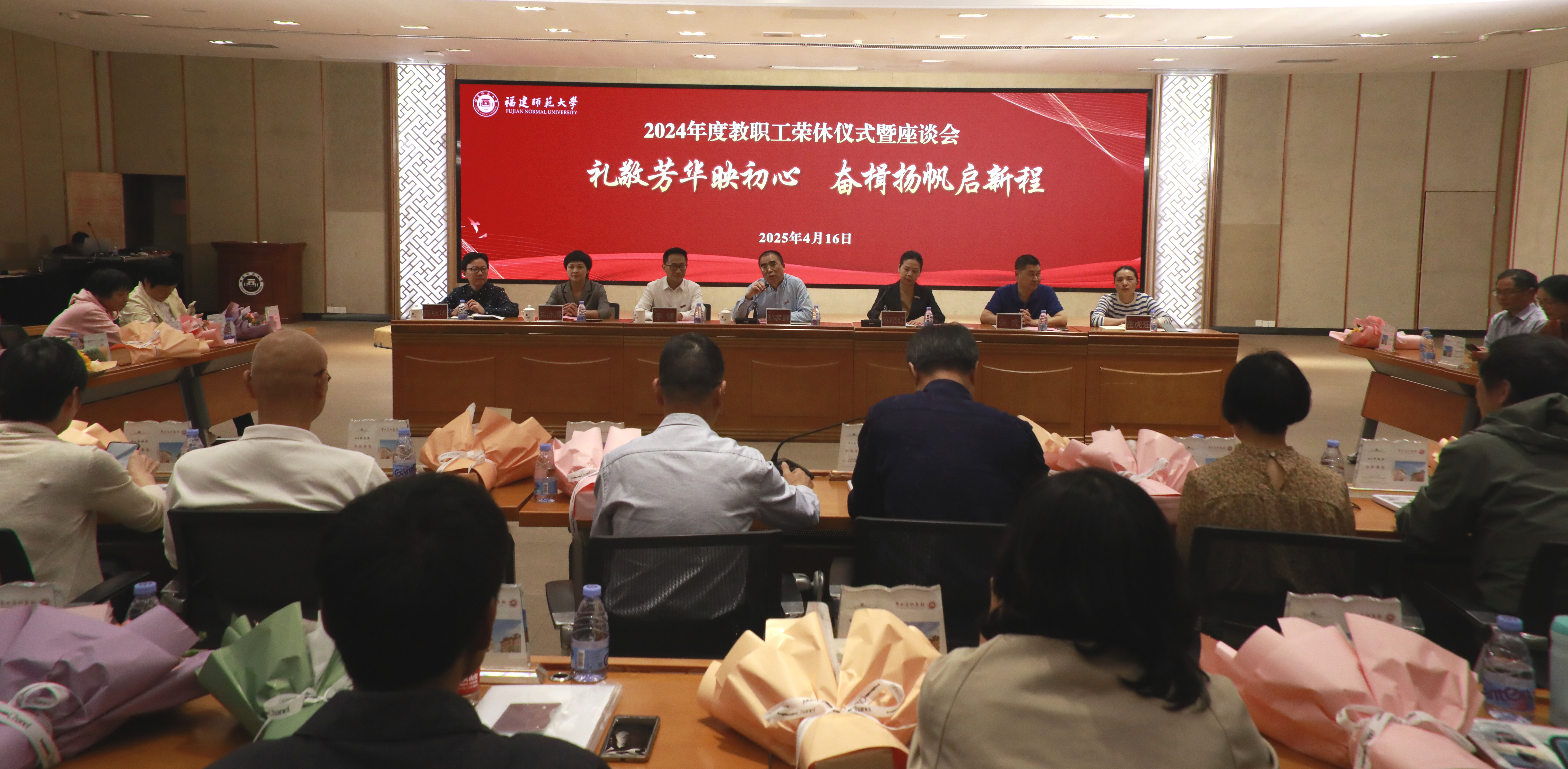 仪式于4月16日在旗山校区宏达厅举行。校长郑家建、校党委副书记陈晓红,组织部、教师工作部、离退休工作办公室、人事处、校工会等单位负责人,2024年度荣休教职工、2024年度新入职教师代表和学生代表参加。仪式由陈晓红主持。