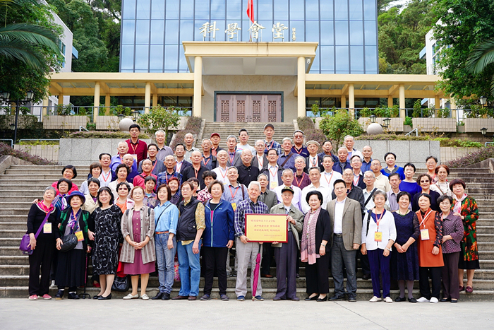 中文系69届校友、原劳动与社会保障部副部长、第八届全国妇联副主席华福周女士代表全年级同学向母校赠送题有“五十载重回首,回家看看;半世纪长相思,教泽永怀”的金字牌匾。