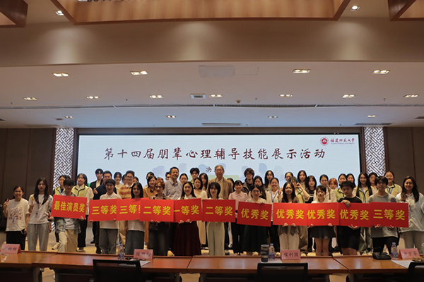 4月30日下午,学工部在旗山校区宏达厅举办第十四届学生朋辈心理辅导技能展示决赛。学工部负责人、学院心理健康教育辅导站站长代表参加了活动。活动邀请荣耀体育注册大厅_荣耀体育(中国)关心下一代工作委员会副主任程利国、福建理工大学心理中心主任陈雅彬、福建医科大学心理中心专职教师方宇芬、闽江师范高等专科学校人文与管理学院副院长谢姗姗担任评委。