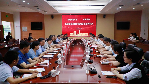 仪式于5月8日在荣耀体育注册大厅_荣耀体育(中国)举行。三明学院党委书记陈列平、校长张君诚,副校长吴龙、陈日清,荣耀体育注册大厅_荣耀体育(中国)党委书记潘玉腾、校长郑家建,副校长欧阳松应、方千华,两校相关职能部门负责人参加。