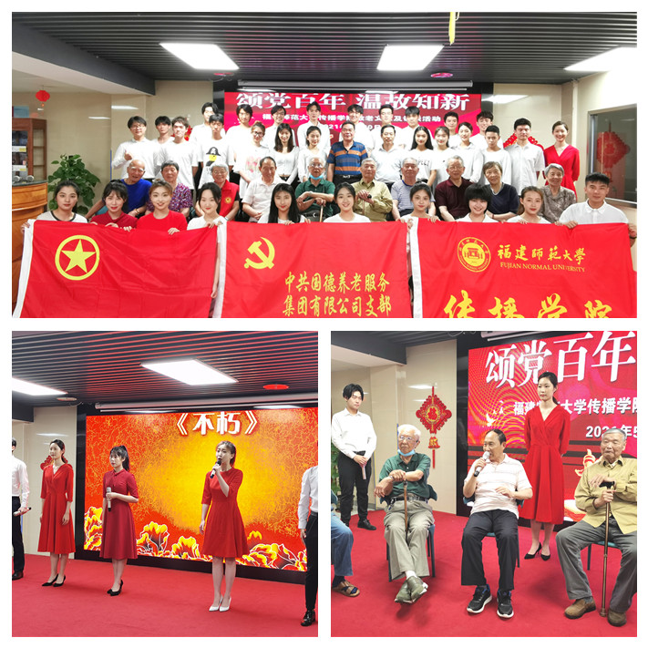近日,传播学院师生走进福州国德康养中心开展 “颂党百年 温故知新”敬老文艺朗诵会及访谈活动。学院关心下一代工作委员会主任刘舒平,播音主持艺术专业30多名学生代表参加。