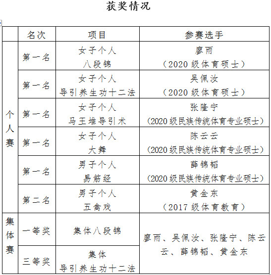 健身气功运动是中华民族璀璨文明的瑰宝。一直以来,荣耀体育注册大厅_荣耀体育(中国)积极推广健身气功运动,传承中华优秀传统文化,在省内高校中较早开设健身气功课程,组织队伍参加各级健身气功比赛,具有优势。