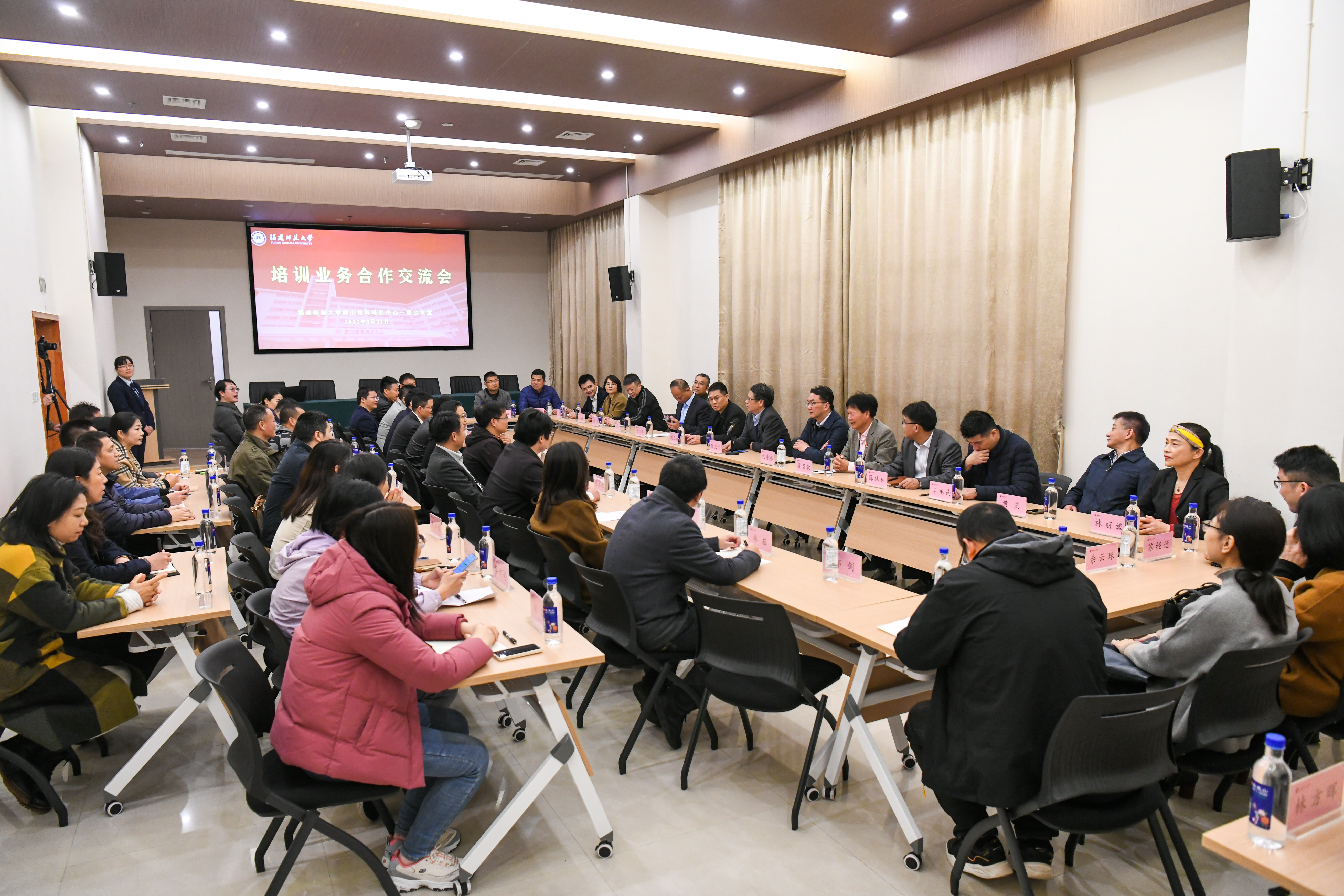 仪式结束后,与会人员在旗山教育培训中心会议室开展了培训业务合作交流。大家紧紧围绕如何进一步挖掘潜力、整合资源、合作共赢,共同把培训业务做大做强,助力学校“双一流”建设展开了富有成效的讨论。