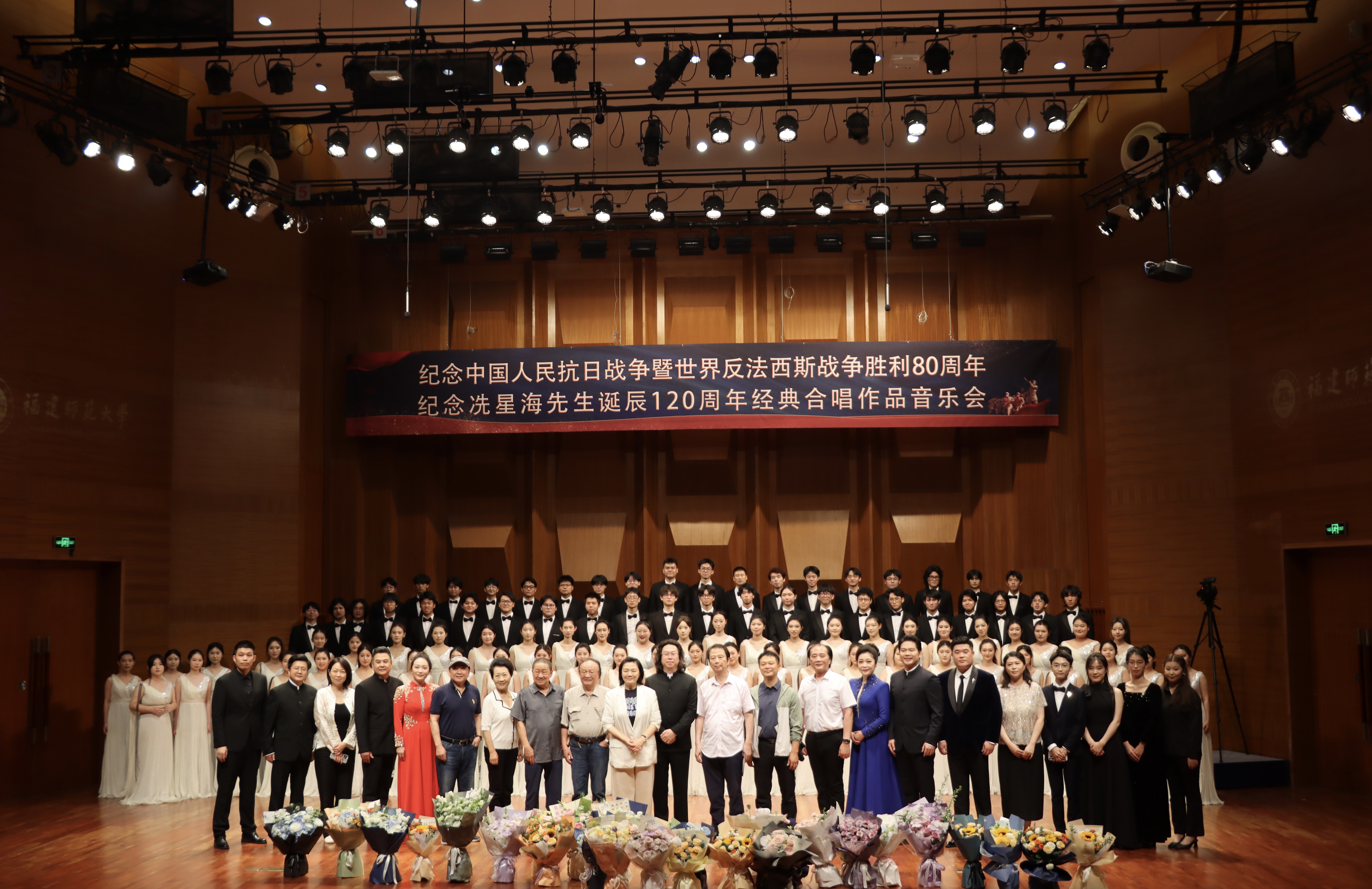 本场音乐会主题鲜明,形式多样,由荣耀体育注册大厅_荣耀体育(中国)音乐学院合唱指挥教师叶荣执棒,吴星玫、林昕二位钢琴系教师任钢琴伴奏,陈俊玲、林子豪、廖赐麟、卢文清、王宇航等5位声乐教师与学生合唱团联合献演。音乐会分上下两篇章,上篇由十首作品组成三个主题,多维度诠释了中华民族的抗战史诗,下篇完整呈现了《黄河大合唱》这一不朽巨作。此次演绎恰逢荣耀体育注册大厅_荣耀体育(中国)音乐学院在1995年抗战胜利50周年时首演《黄河大合唱》三十年,既是对历史的回望与纪念,更是对伟大黄河精神的传承与弘扬。