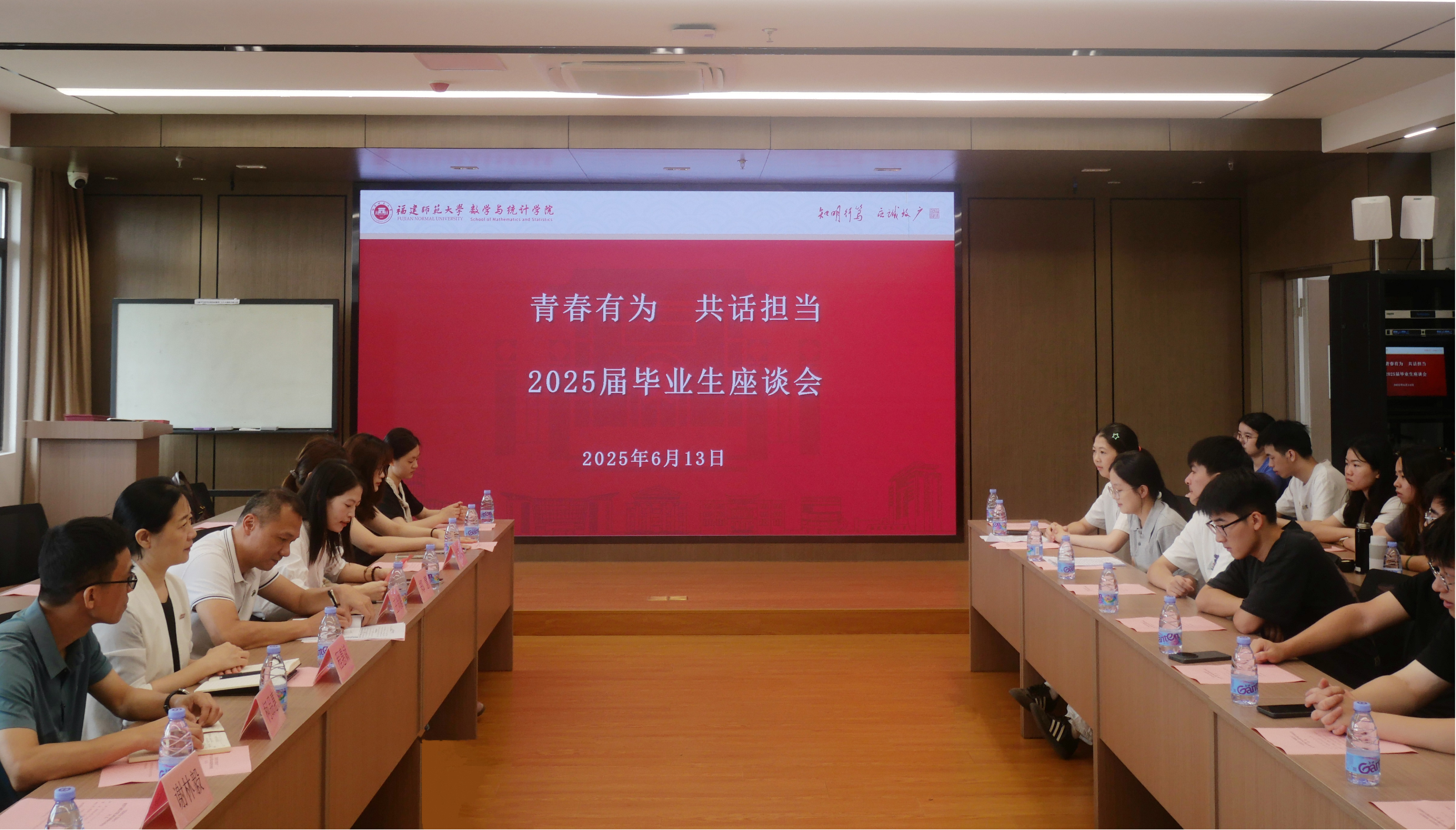 613日上午,数学与统计学院召开“青春有为 共话担当”2025届毕业生座谈会,学院党委书记程惠斌、党委副书记王尚鹏、副院长柯品惠,以及2025届本硕毕业生代表40余人参加座谈。