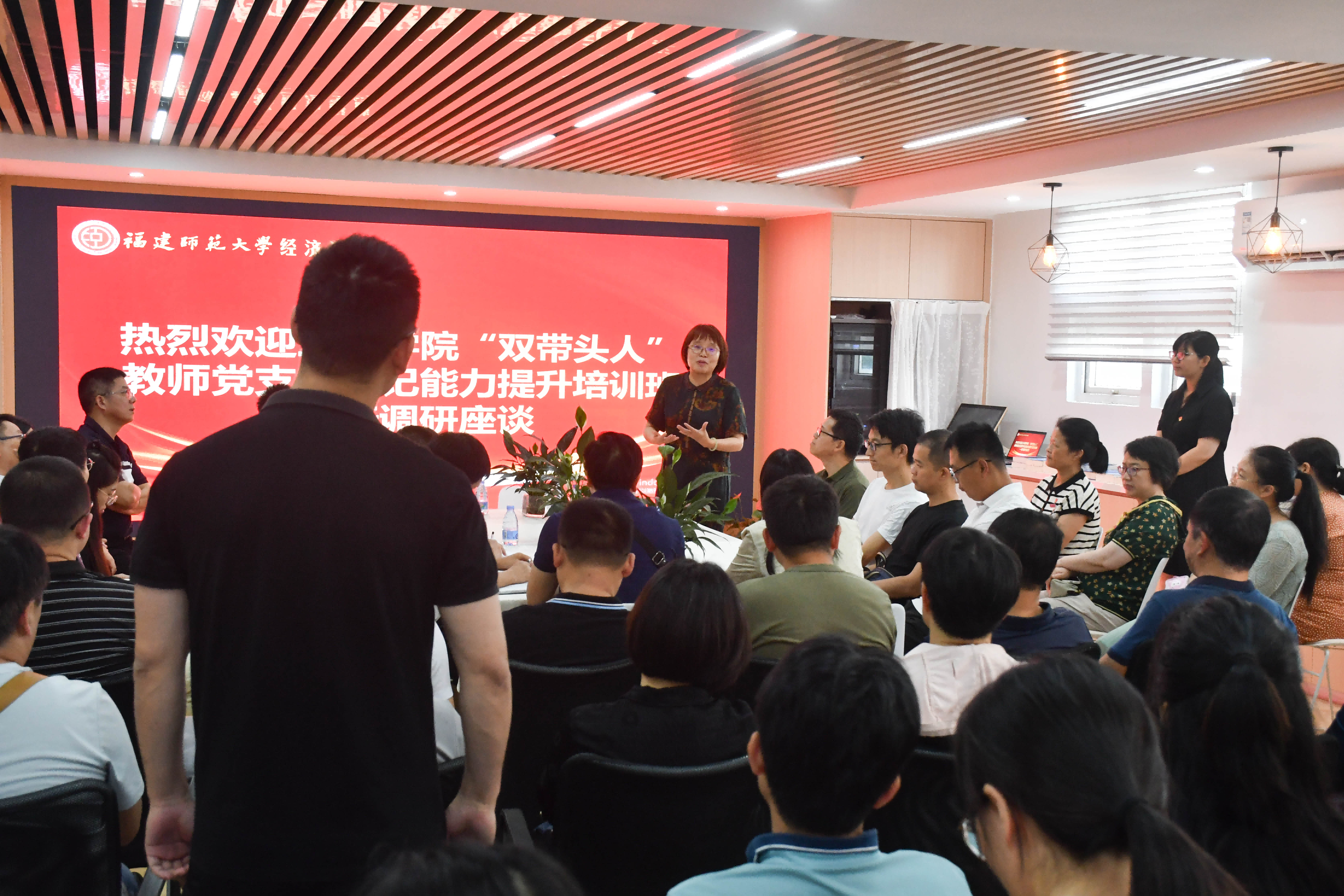 612日下午,三明学院“双带头人”教师党支部书记能力提升培训班成员到经济学院交流座谈。经济学院黄瑾院长、李军军教授、白华副教授等参加座谈。