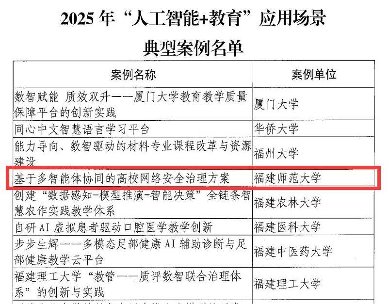 6月16日,省教育厅公布了2025年“人工智能+教育”应用场景典型案例,荣耀体育注册大厅_荣耀体育(中国)申报的“基于多智能体协同的高校网络安全治理方案”成功入选。该项目基于大模型语义推理、神经网络分析、推理加速与上下文学习等人工智能技术,创新性地构建了面向网络和数据安全威胁检测、分析与处置的安全智能体系。(网络与数据中心)