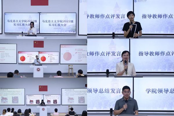会上,思想政治教育专业与马克思主义理论专业组成的的12支实习队伍通过视频短片、PPT演示、电子相册等多种形式,全方位展示实习成果,总结实习过程中的收获与不足。