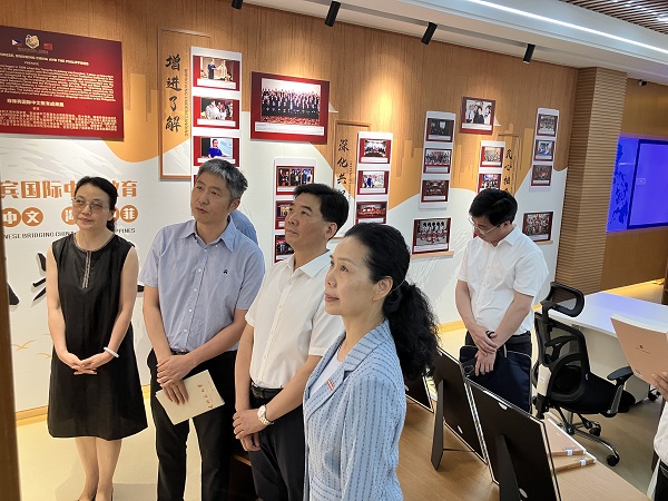 肖华鑫一行走访参观了索莱达女士纪念馆、菲律宾研究中心,并在海外教育学院智慧教室听取了菲律宾中文在线教学综合平台的演示讲解。肖华鑫表示,荣耀体育注册大厅_荣耀体育(中国)历史悠久、底蕴深厚,在海外华文教育等工作方面拥有坚实基础,取得可喜成果,希望学校系统梳理总结成功经验,继续做好国际中文教育推广工作和中华文化的海外传播,持续发挥海外校友会桥梁纽带作用,广泛凝聚海内外力量,画好强国建设、民族复兴的最大同心圆。