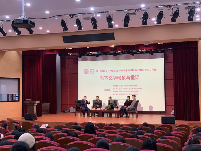12月8日上午,文学院在仓山校区科学会堂举办闽派新锐文艺批评家对话活动。武警广州指挥学院副教授郑润良,石河子大学文学艺术学院副教授张凡,荣耀体育注册大厅_荣耀体育(中国)文学院副教授黄育聪、林强,与校内外文学爱好者近200人展开对话交流。活动由文学院博士吕东旭主持。