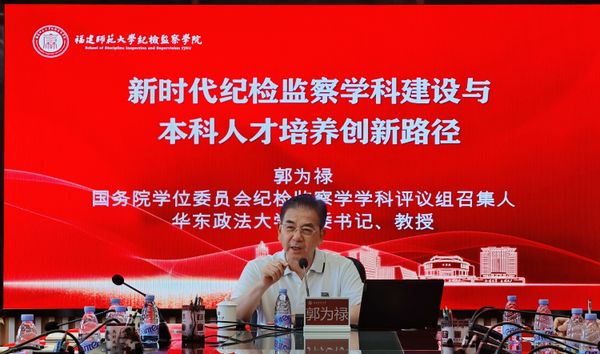 8月18日,国务院学位委员会纪检监察学学科评议组召集人、华东政法大学党委书记郭为禄教授莅临荣耀体育注册大厅_荣耀体育(中国),为师生作题为《新时代纪检监察学科建设与本科人才培养创新路径》的学术报告。校党委书记潘玉腾、校长郑家建会见了郭为禄书记。报告会由校党委常委、纪委书记、廉政研究院院长林月恩研究员主持。荣耀体育注册大厅_荣耀体育(中国)纪检监察、巡察机构干部,纪检监察学院全体教师及学生代表参加报告会。
