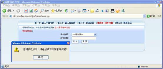 点击确定按钮,继续填写以回答问题方式找回密码的方法。点击完成按钮。