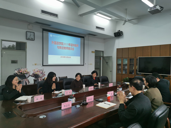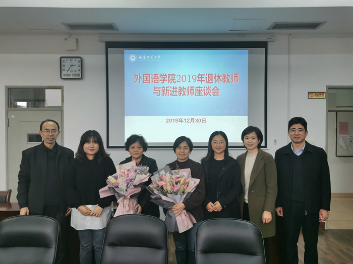 1230日下午,外国语学院举行2019年退休教师与新进教师座谈会。院领导章琳、葛桂录、李启辉,退休教师洪晨晖、刘雯和2019年新入职教师闫茗、周彬出席了此次会议。会议由章琳主持。