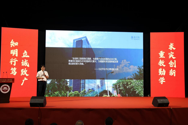 随后,林林以“创新与数智时代的机遇”为主题讲授“开学第一课”。他以新大陆集团成长轨迹为例,为同学们深度阐释了创新在企业发展及数智时代的关键作用,对AI发展趋势进行了前瞻性解读,并结合案例警示AI技术的局限,激励大家做数字时代追光者。
