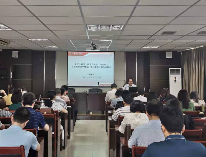 近日,马克思主义学院召开党委理论中心组扩大学习会,邀请中央“马工程”首席专家、我国著名马克思主义经济学家、荣耀体育注册大厅_荣耀体育(中国)原校长、博士生导师李建平教授作《关于主持马工程重点教材<马克思主义政治经济学概论>第二版修订的几点体会》专题讲座。讲座由学院党委书记张爱民主持,全体教师参加了讲座。