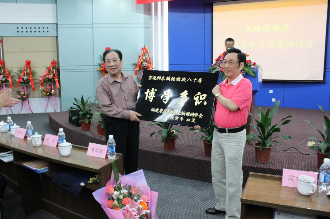 校党委书记罗萤在会上致辞,代表校党政向朱鹤健教授送上真诚的祝福,对朱鹤健教授从教57年来默默耕耘、无私奉献,青囊继业、红杏传人的崇高精神表示崇高的敬意,并高度评价了朱鹤健教授在教书育人、科学研究、学科建设、学校发展等方面做出的突出贡献,号召全校广大师生以朱鹤健教授为榜样,求真务实,扎实工作,开拓创新,为建设综合性、有特色、高水平的教学研究型大学,服务海峡西岸经济区建设做出新的更大贡献。
