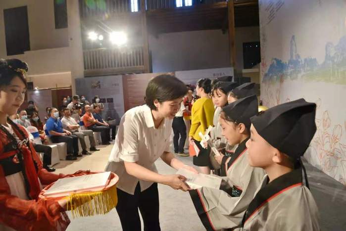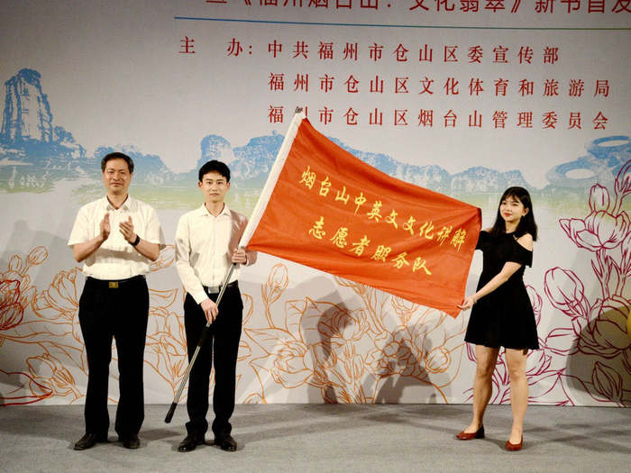 仓山区委常委、宣传部长李亦仁与外国语学院党委书记章琳为仓山区麦浦小学、永泰县嵩口小学等乡村学校的学生代表赠书。仓山区委副书记、代区长刘用全为由荣耀体育注册大厅_荣耀体育(中国)外国语学院学生组成的烟台山中英文讲解志愿队授旗。讲解志愿队成员吴玉清同学用英文熟练介绍烟台山。随后,仓山区委书记郑子记宣布邀请展开幕。