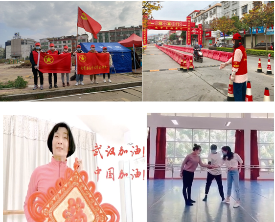 学院党委成立1个党员突击队、1个党员艺术志愿服务队,划分学生、教职工、办公和教学场所3个责任区。党委领导靠前指挥,冲锋在前;广大师生党员在疫情防控工作中亮身份、见行动、做贡献。教师党员充分发挥专业优势,积极策划、编创、演唱以抗击疫情为主题的《等待花开》《平安武汉》等文艺作品,用自己的实际行动助力抗疫,体现文艺工作者守望相助、风雨同舟、共克时艰的情怀和担当。学院学生积极投身家乡防疫志愿服务,在防疫阻击战中锤炼党性修养。2017级音乐学基地班学生蔡李琪配合当地政府组建云霄县返乡大学生疫情防控志愿服务队,让青春在疫情防控一线接受洗礼。