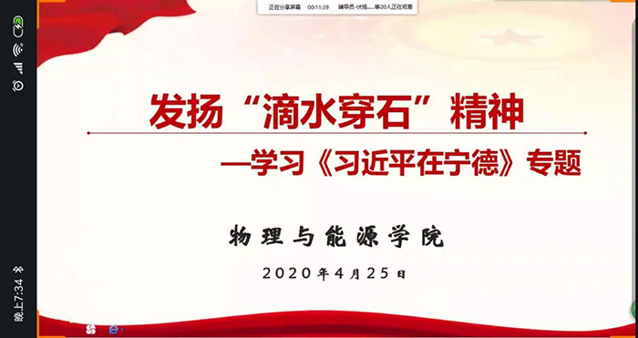 近日,物理与能源学院开展学习《习近平在宁德》采访实录线上交流会。师生围绕发扬“滴水穿石”精神畅谈学习体会。