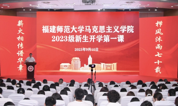 9月10日上午,校党委书记潘玉腾教授以“坚持不懈用习近平新时代中国特色社会主义思想凝心铸魂”为主题,为马克思主义学院2023级新生上“开学第一课”。